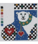 Hand-painted canvas on 18 count mesh measures 3" x 4" - comes with metal skate.