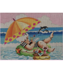 Hand painted 18 count canvas, 10 x 10" Funny lady splashing in the surf. What a fun stitch!!!