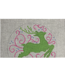 Bright Lime and Pink Leaping Reindeer. 4" Round on 18 Count.