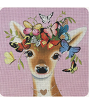 Deer with Butterflies Hand Painted on 13 ct 10" x 10"