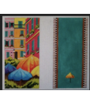 A beautiful village scene on an eyeglass case that is hand-painted on 18 ct canvas and measures 3.5x7".
