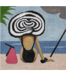 Girl in Black Bathing Suit 4x4" Hand Painted on 18 ct Mesh