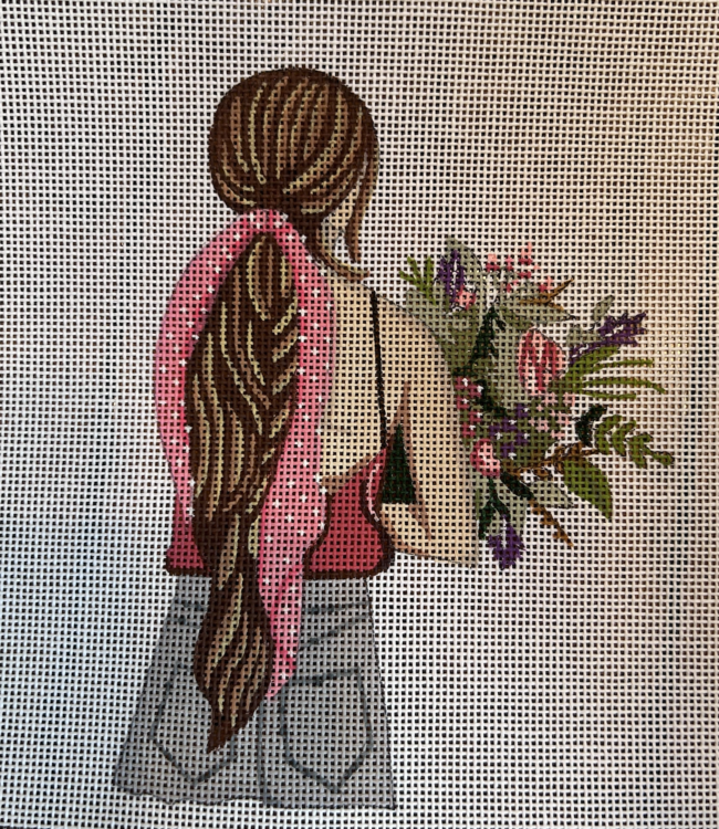 Girl Pink Bow Hand-painted on 18ct 7x7"