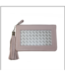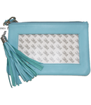 Pretty zippered pouch made in soft lamb skin leather. Has a detachable tassel. Holds your favorite 3 x 6" insert,