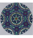 Medallions in Blue Ornament 4.5" in diameter Hand Painted on 18 count canvas