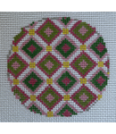 Pinks and Greens Ornament or Insert 3" Round Hand-painted on 18 ct mesh