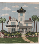 Charming lighthouse, picket fence and all! 18 count canvas and measures 5" x 5"
