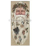 Santa with Critters, Hand Painted on 18 ct canvas, measuring 3x7".