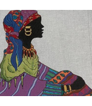 Beautiful lady in very colorful attire patiently awaiting her special someone. 18 count canvas measures 9 x 9.