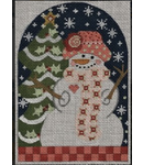 Snowman with Pink Scarf 1/4 x 6 1/4, Hand-painted on 18 Mesh