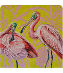Spoon Bill with Palm Leaves Hand Painted on 18ct 14"x 10"