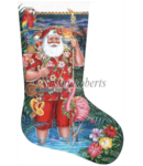 Hand Painted Tropical Santa Stocking. 21" Long on 18 Count Canvas.