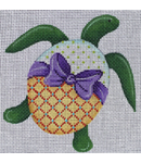 Turtle with Purple Bow Handpainted on 18 ct. 5 x 5 inches