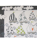 Hand Painted Canvas delight scene of sailboats on a windy day, 13 ct, 10" X 11"