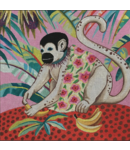 Colorful Monkey Eating Bananas. Would make a fabulous pillow or wall hanging. 16" x 16" on 13 Count Canvas.